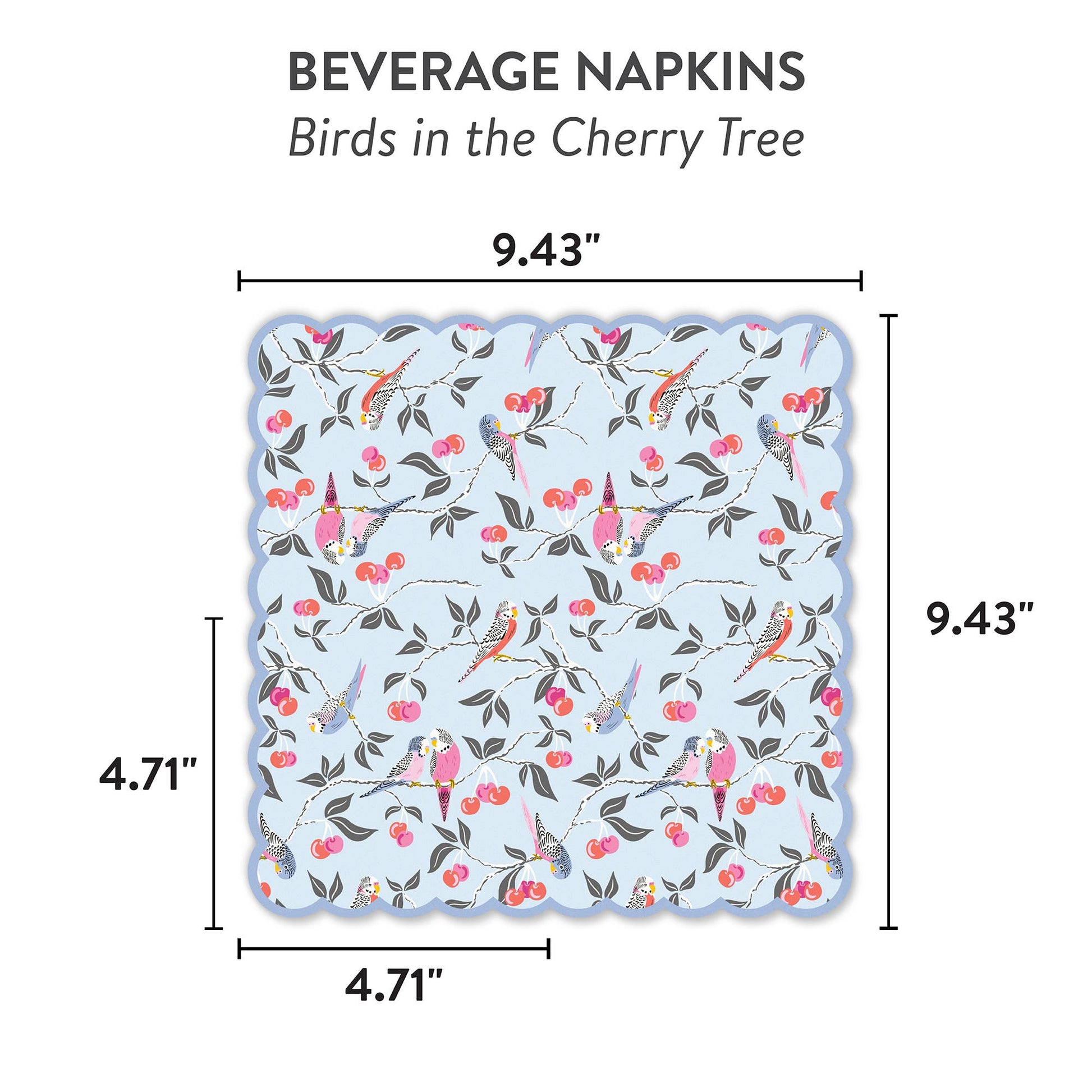 Birds in the Cherry Tree Scalloped Beverage Napkins