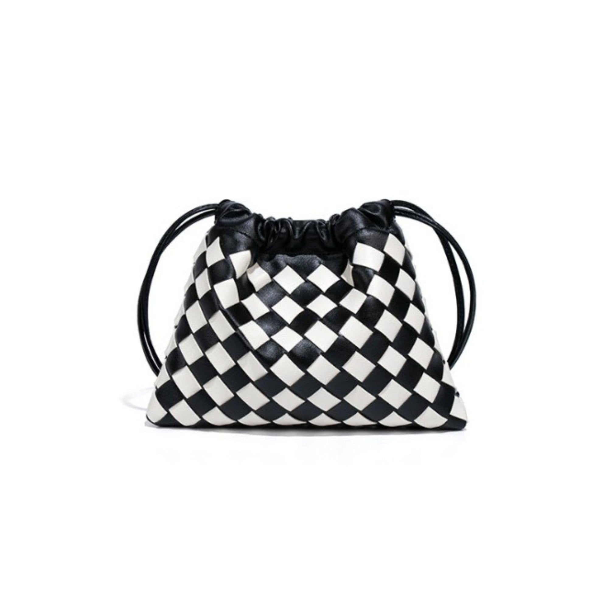 Black & White Mini Woven Draw Shoulder Mobile Bag