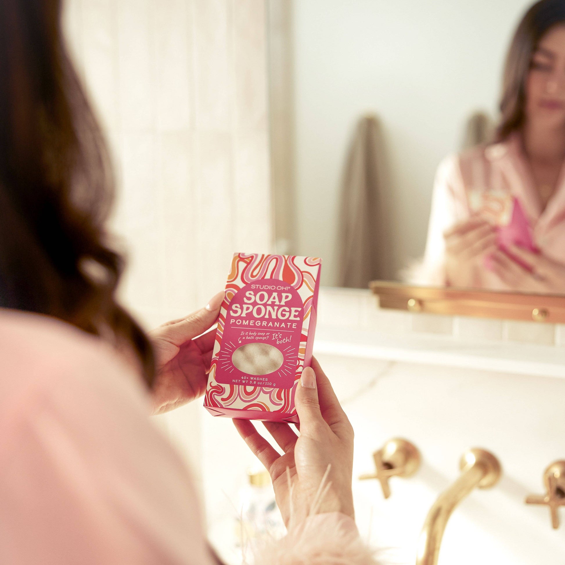 Is it a soapy sponge or a spongey soap? It's both! This giftable soap-infused sponge is a delightful and convenient addition to any bath or shower. Simply add water and whip up a luxurious lather while you gently cleanse and exfoliate. Each Soap Sponge lasts for 40-plus washes and comes with a tasteful grosgrain ribbon for hanging. • Two-in-one soap sponge creates an at-home spa experience—just add water! • Scented soap cleanses while fluffy sponge gently exfoliates and massages. • Grosgrain ribbon conveniently hangs from hooks or faucets. • Refreshing, invigorating scents boost your mood and encourage self-care.