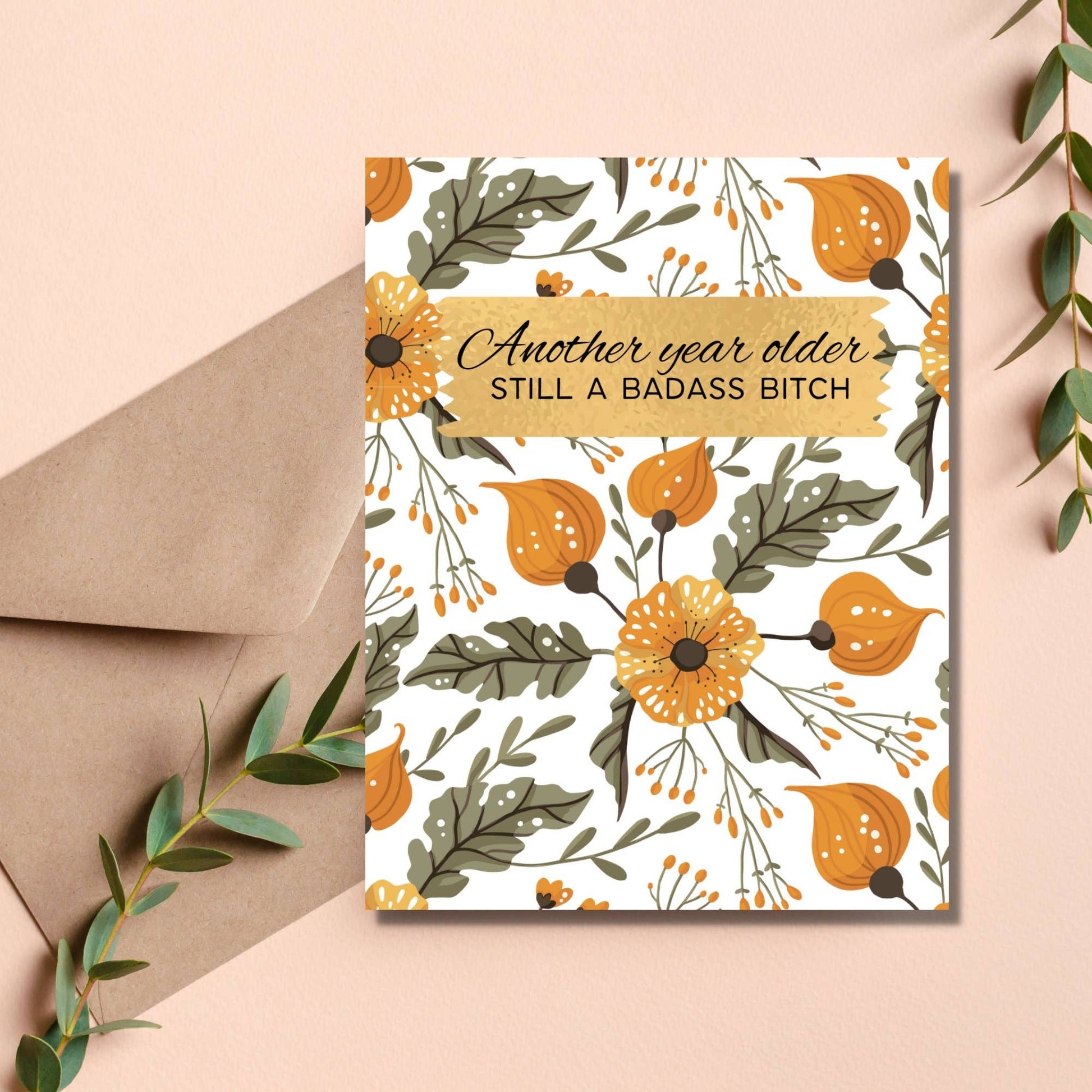 Mark another year with a card that celebrates who your friend really is—unstoppable and unapologetic. This bold birthday greeting honors the fact that age is just a number when you're living your best life. Crafted on premium 100 lb uncoated cardstock in A2 format (4.25in x 5.5in), the blank interior lets you personalize your message. A kraft envelope rounds out the package for a confident, no-fuss presentation.