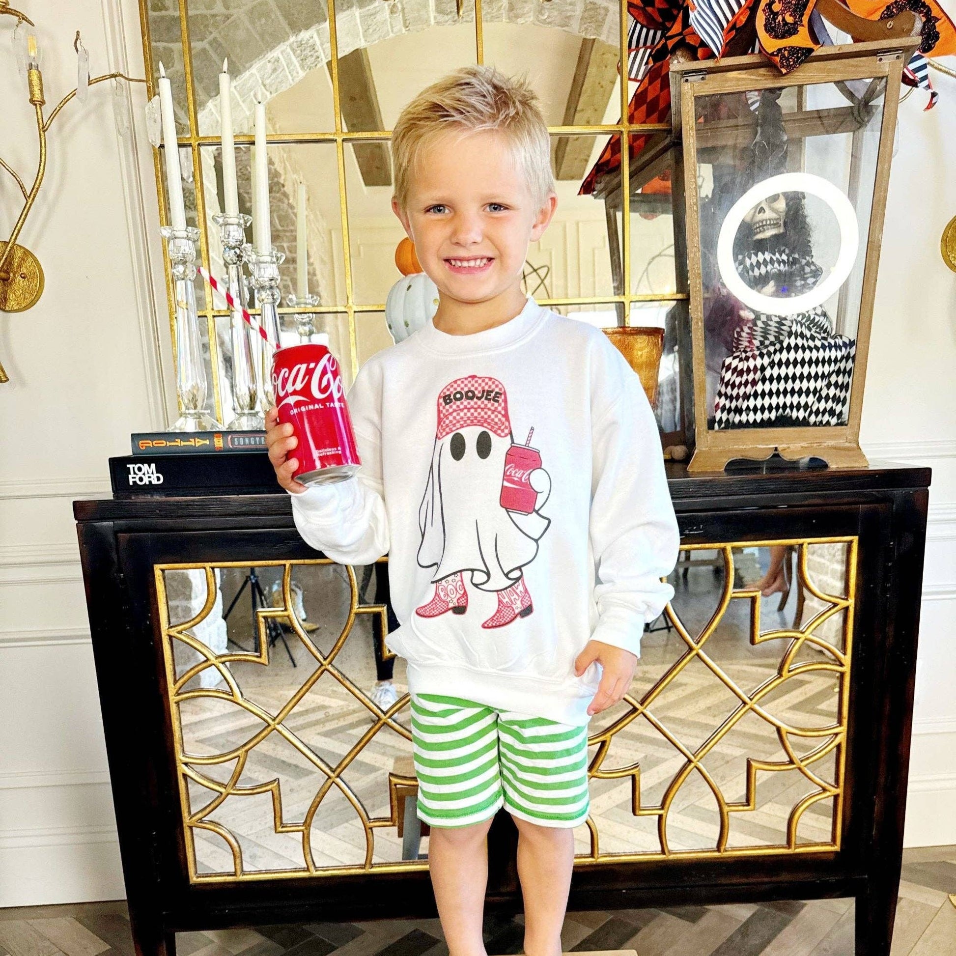 Embrace the Halloween vibe with our Coca-Cola Ghost Sweatshirt! This comfy sweatshirt puts a fun spin on the iconic Coca-Cola logo, making it an ideal choice for both youth and adults. Keep cozy and fashionable throughout the season.