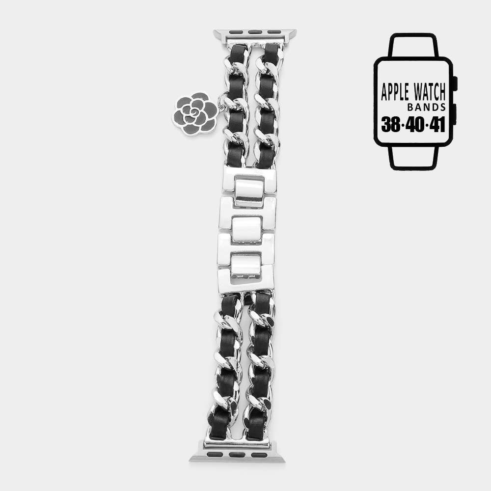 Enamel Rose Charm Faux Leather Metal Chain Apple Watch Band