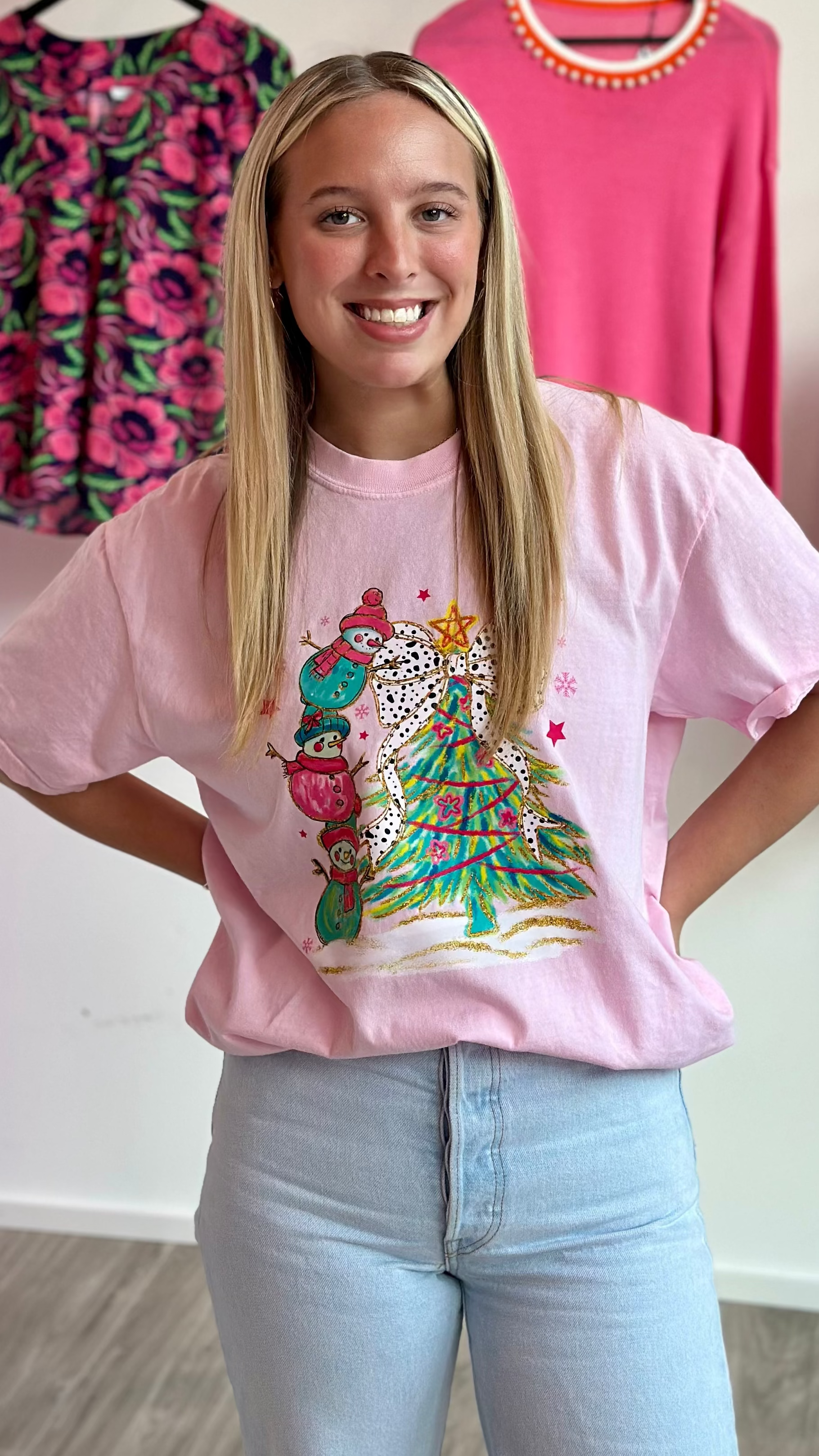 Experience unmatched comfort with this premium cotton graphic tee that celebrates the magic of the season in the most adorable way. Crafted from soft, breathable Comfort Colors fabric, it's designed to feel as good as it looks—perfect for layering through winter or wearing solo on milder days. The charming holiday-inspired graphic adds instant personality to your casual rotation. Ideal for festive gatherings, cozy nights in, or gifting to someone who appreciates quality and style. This is the tee you'll reach for again and again.