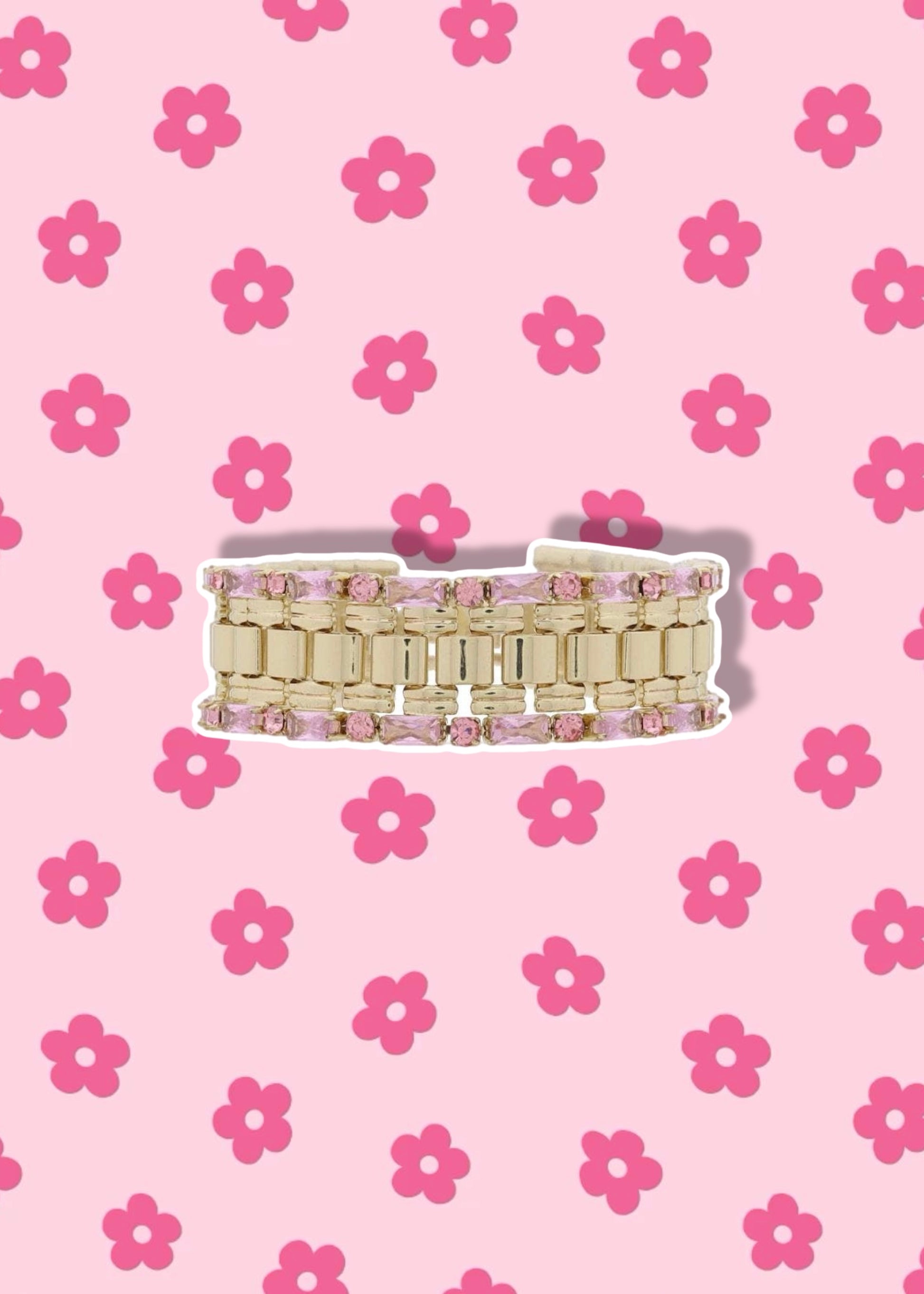 Gold Watch Band with Pink Baguette & Crystal Edge Bracelet