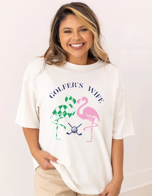 The 'Golfer's Wife' relaxed white tee offers a perfect mix of comfort and standout style. With its delightful screen-printed design, it showcases your individual flair. Tailored for the modern woman, this tee is perfect for casual, everyday wear.