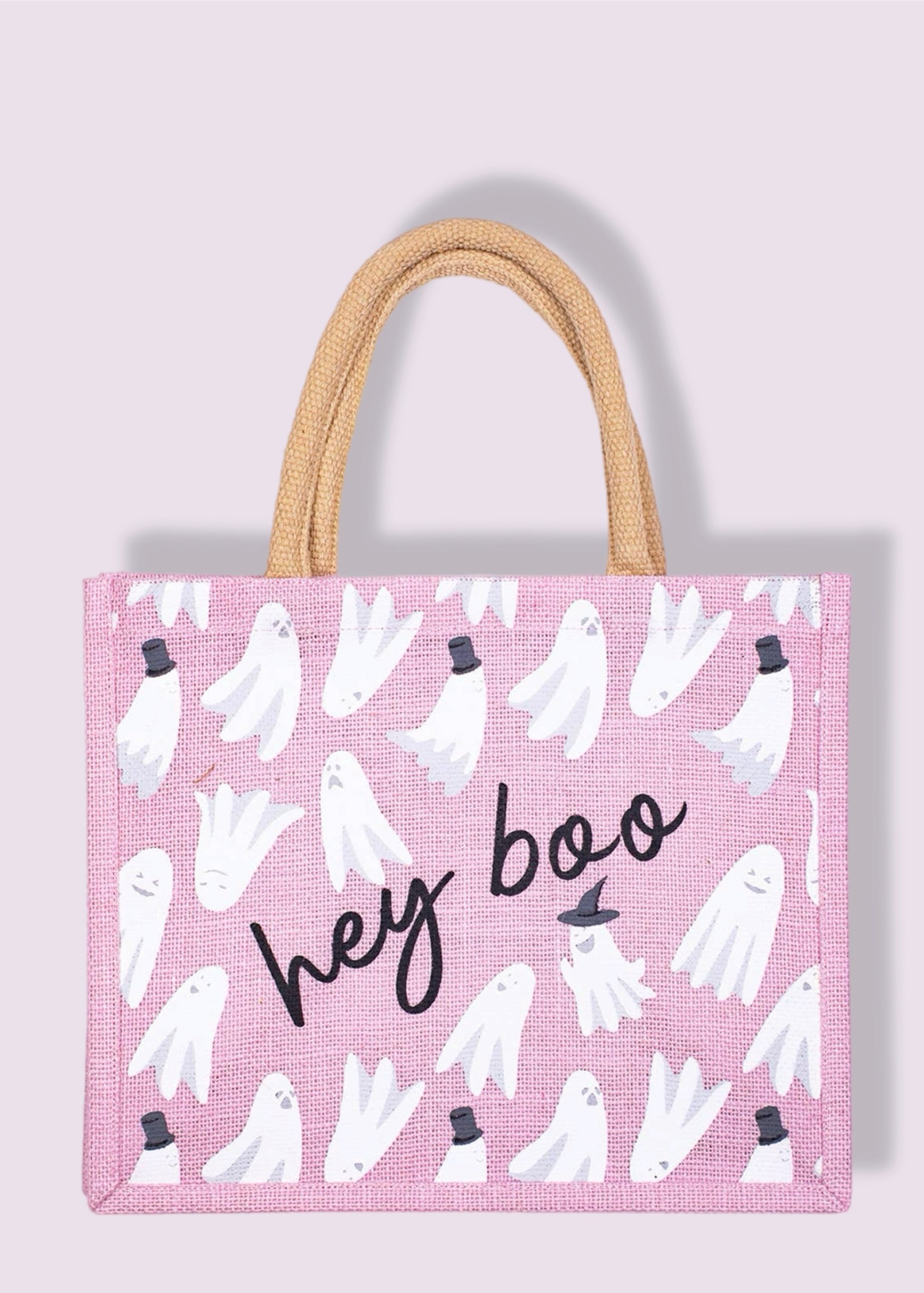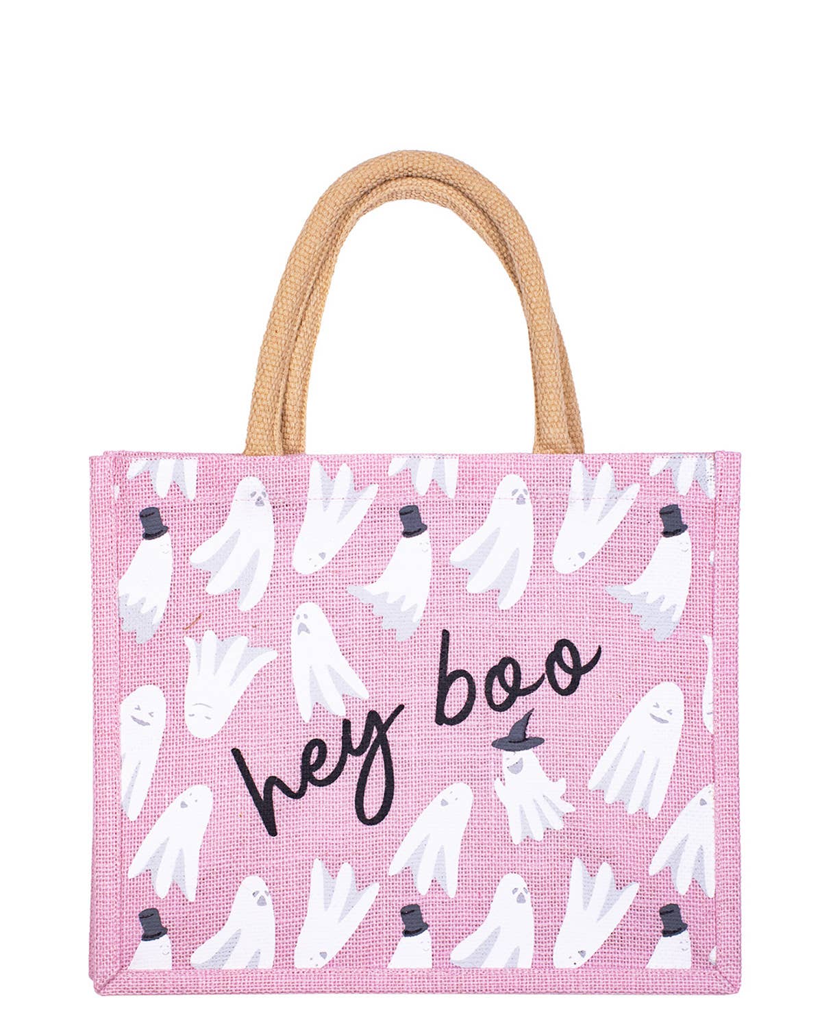 The Hey Boo Gift Tote features a delightful light pink and white color scheme and measures 12x10x8 inches. This festive tote is perfect for Halloween, making it easy to carry gifts and treats as you enjoy the spooky celebrations.