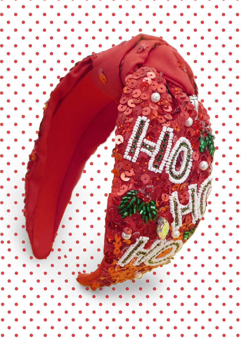 Make every holiday outfit instantly merrier with our “HO HO HO” Beaded Sequin Headband! Covered in vibrant red sequins, detailed beading, pearls, and glittering gems, this statement headband brings the perfect amount of sparkle to all your Christmas celebrations.