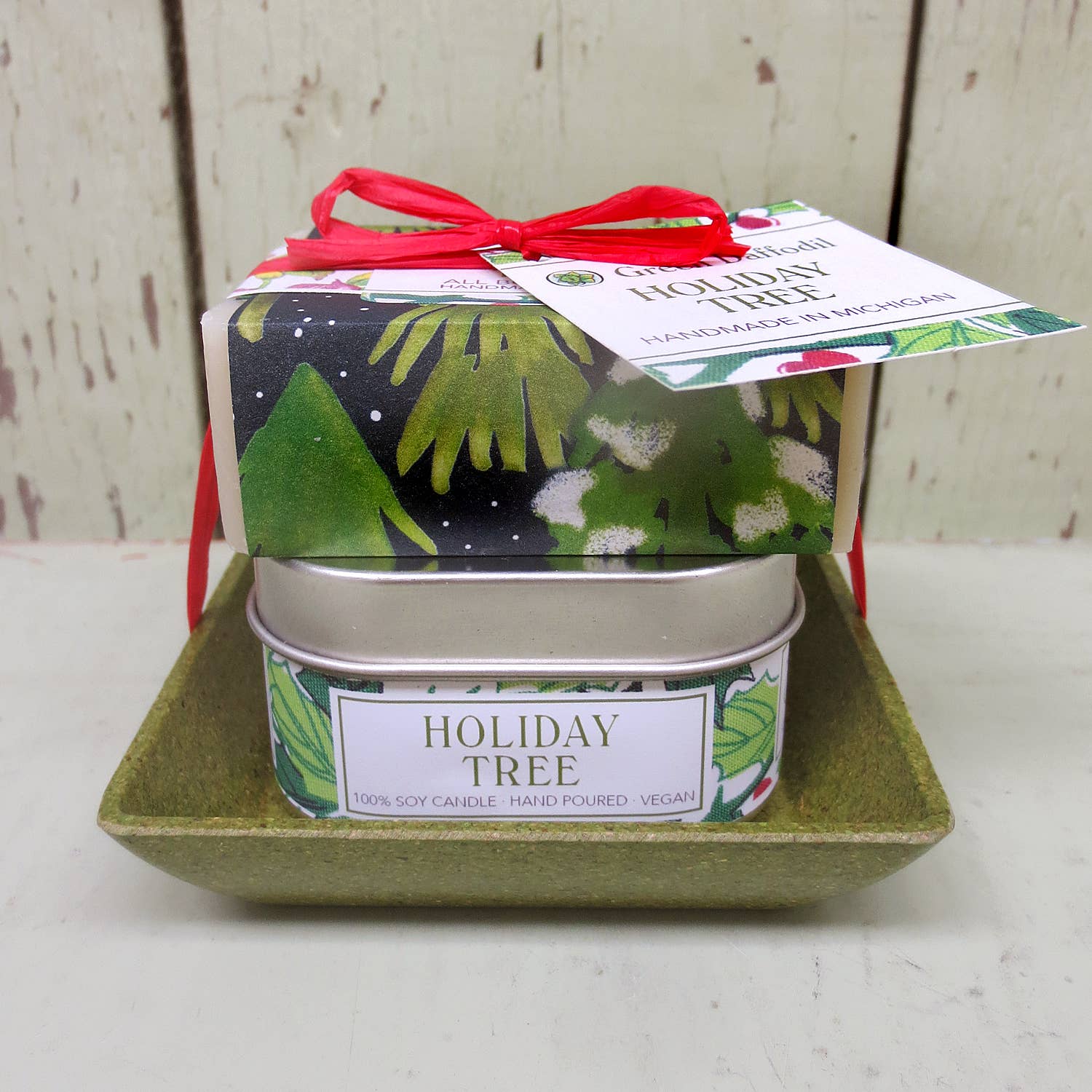 Holiday Tree Candle & Soap Dish Kit - Christmas Gift Set