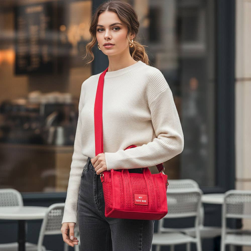 Rhinestone Studded Top Handle Crossbody Bag