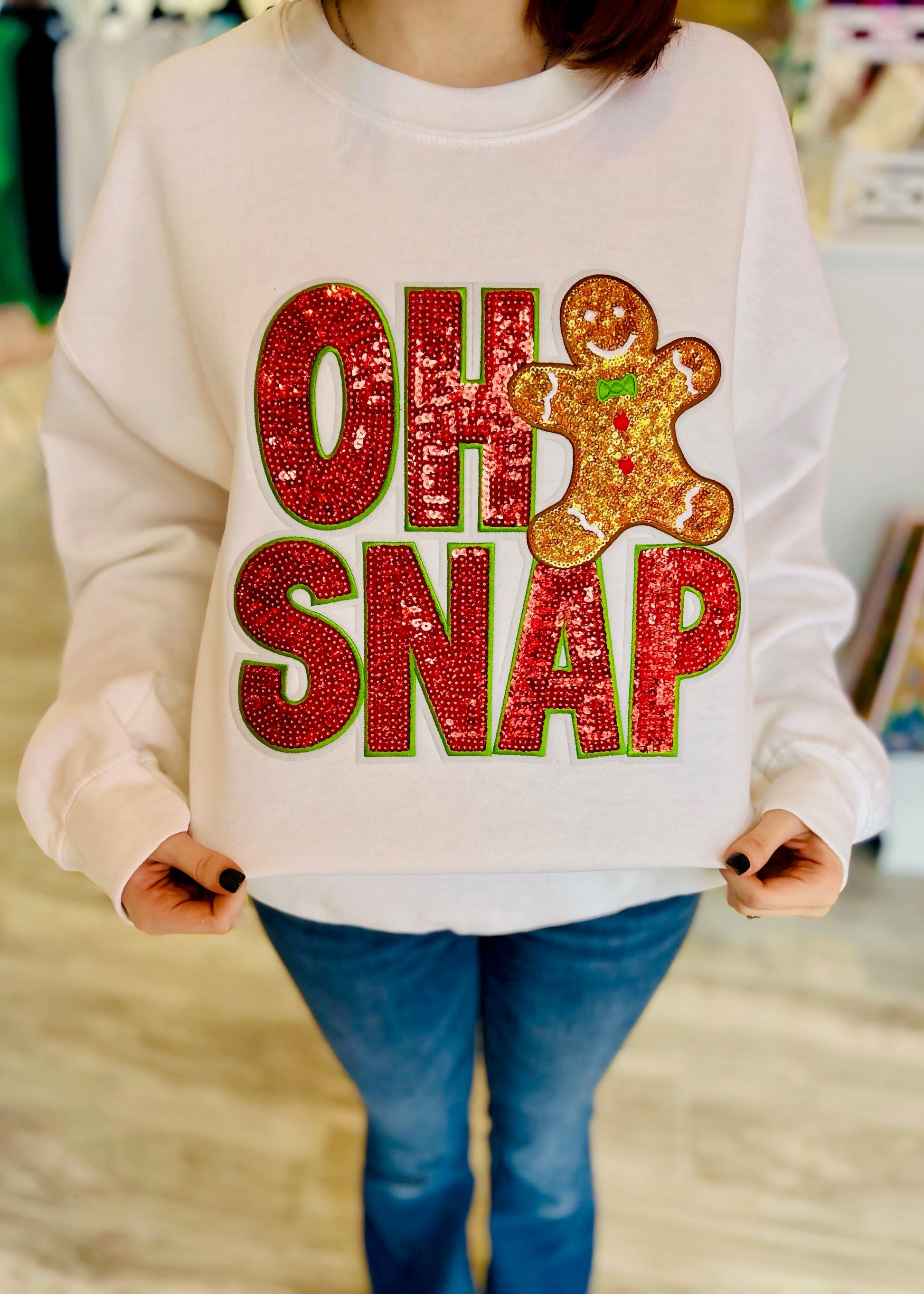 Celebrate the season in style with the Sequin Oh Snap Sweatshirt—a cozy pullover that blends festive flair with everyday wearability. Adorned with eye-catching sequin details, this sweatshirt transitions seamlessly from holiday gatherings to relaxed winter days. The plush fabric delivers warmth and comfort whether worn solo or layered, making it an essential addition to your seasonal rotation. Perfect for those who want to express their holiday spirit without sacrificing comfort, this versatile piece brings sparkle and sophistication to any winter look.