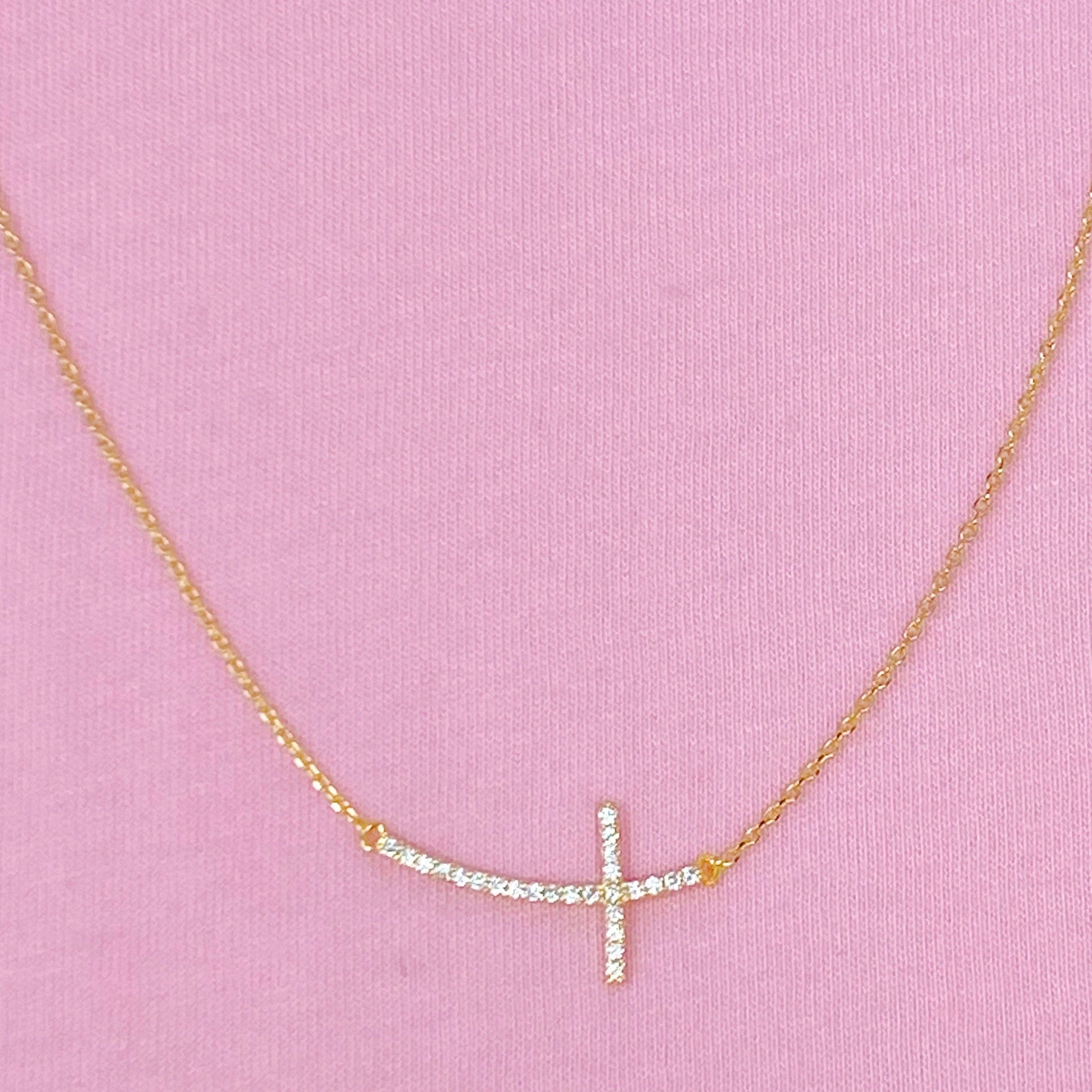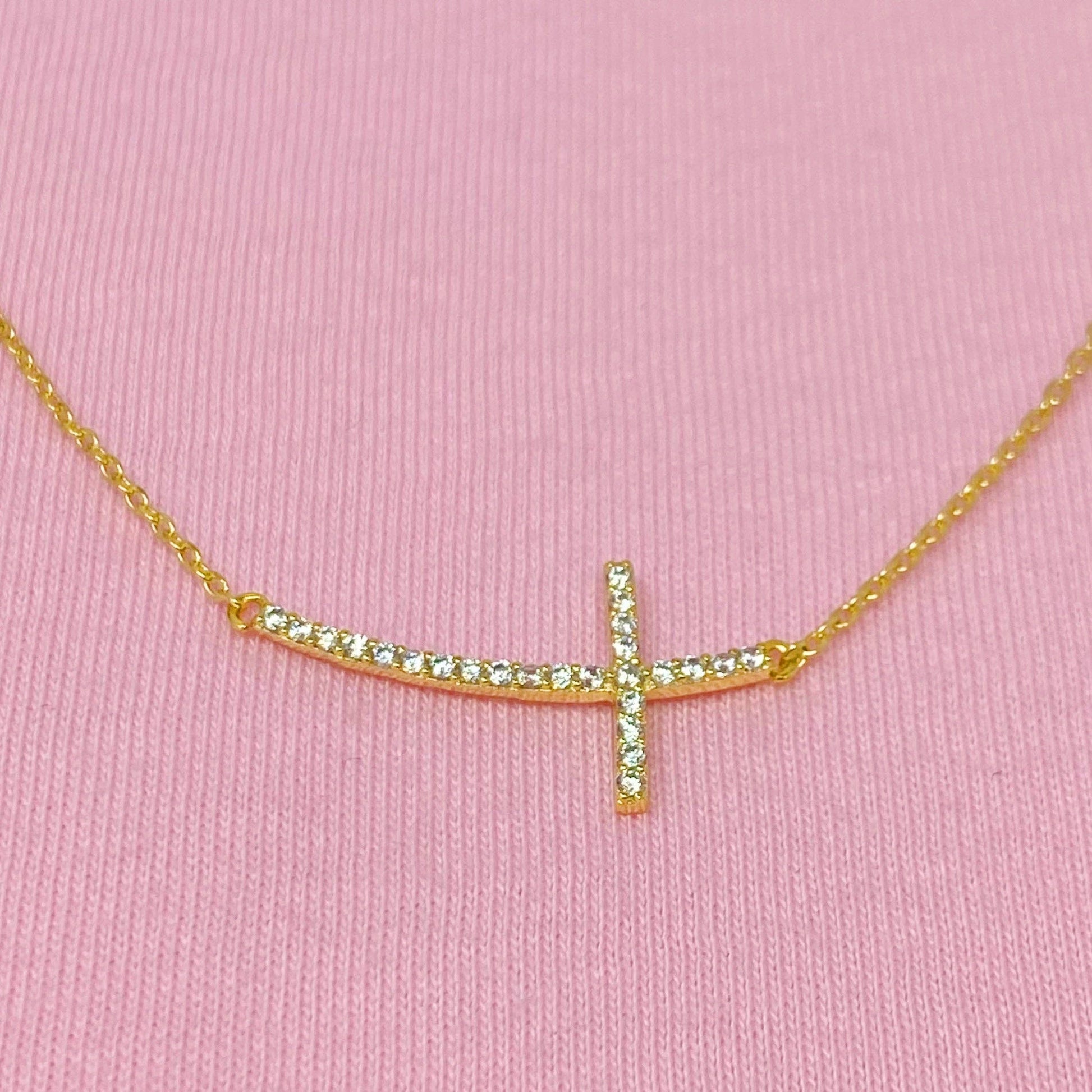 Elevate your everyday style with the Shiny Side Cross Necklace! This captivating piece features a unique curved design adorned with sparkling stones, offering a fresh twist on a classic symbol. Crafted from gold-plated brass, it’s both beautiful and compliant, making it a perfect addition to any outfit!