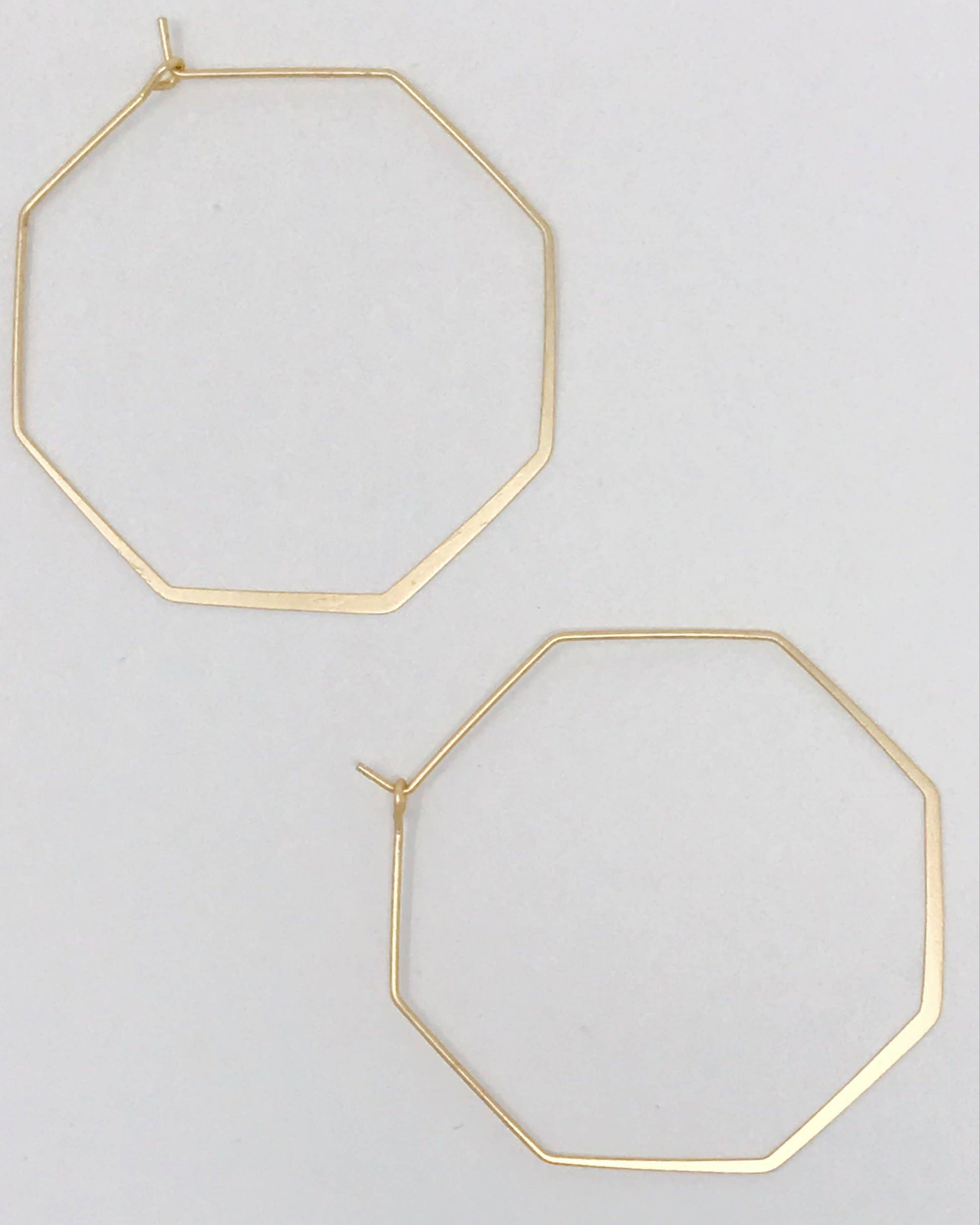 These 2-inch octagon wire hoop earrings are sleek and stylish. The flattened edges give them an added character and elevate their charm.