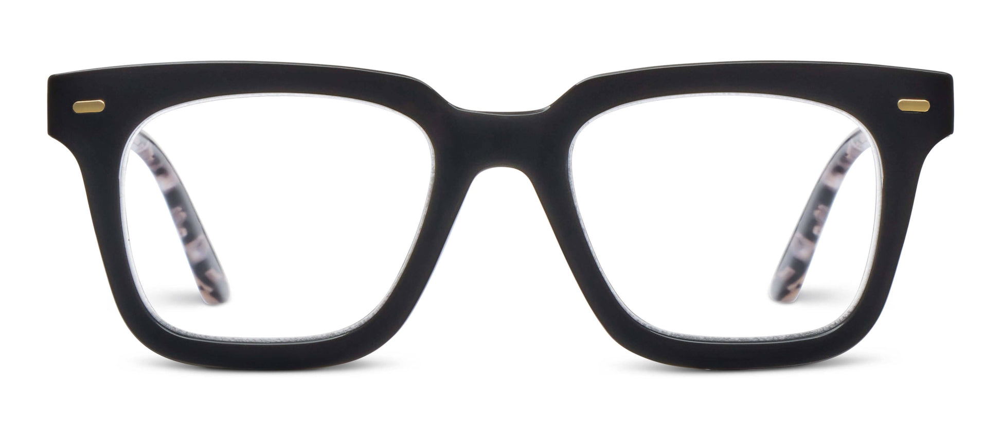 Experience the unique, environmentally conscious design of Starlet. This one-of-a-kind square frame boasts bold color-blocking on its temples and luxurious gold accents, accented by vibrant splashes of color. Discover the ultimate statement piece from Peepers - our Black Marble Readers.
