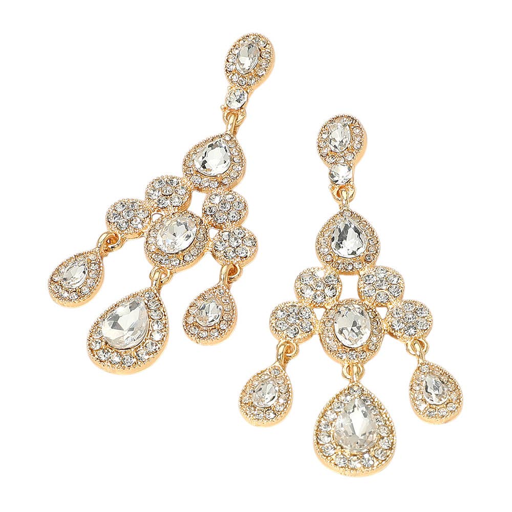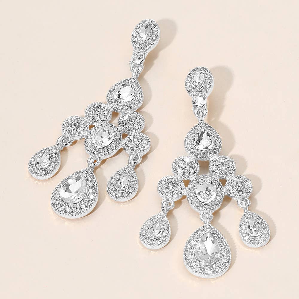 Teardrop Cluster Chandelier Drop Evening Earrings