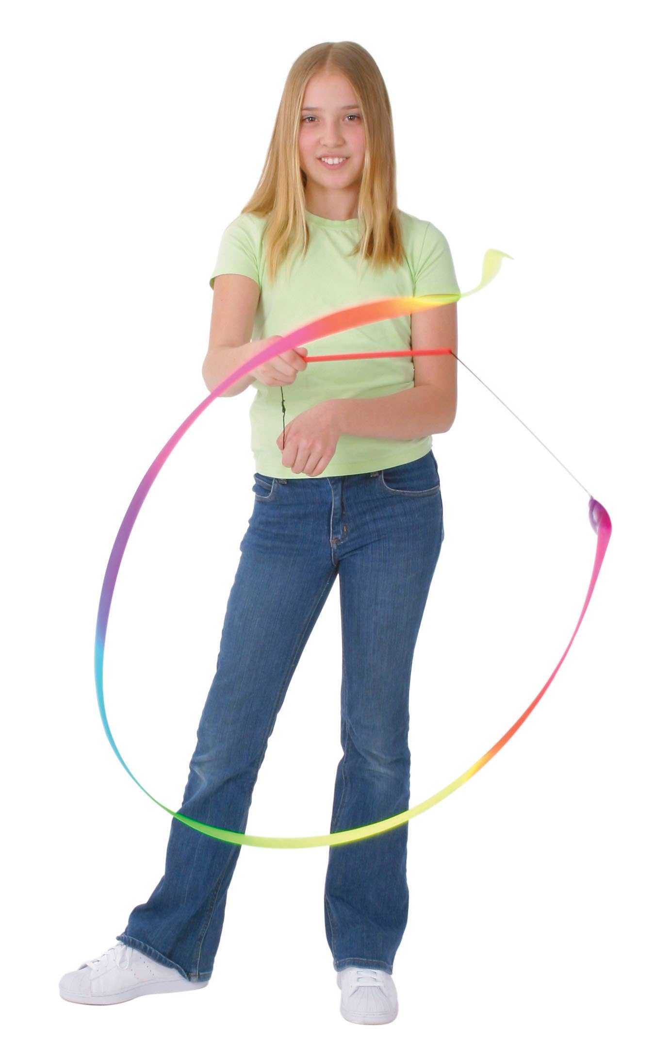 The YAY! Dance Ribbon features six vibrant neon colors that shimmer beautifully. This rainbow ribbon streamer flows gracefully, creating large, dynamic shapes with every movement. Just pull the control cord on the comfortable plastic baton handle to transform the ribbon’s shape effortlessly. Made from durable plastic, it withstands hours of energetic play while resisting tears and stains. Each Dance Ribbon comes individually packaged, perfect for gifting or party favors. Ideal for children aged 5 and up, it’s a fun way to inspire creativity and active play.